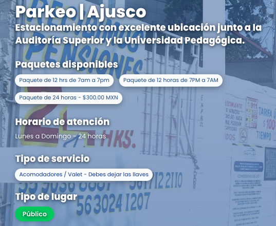 👉 Ve esta opción aquí: Estacionamiento Ajusco / Six Flags